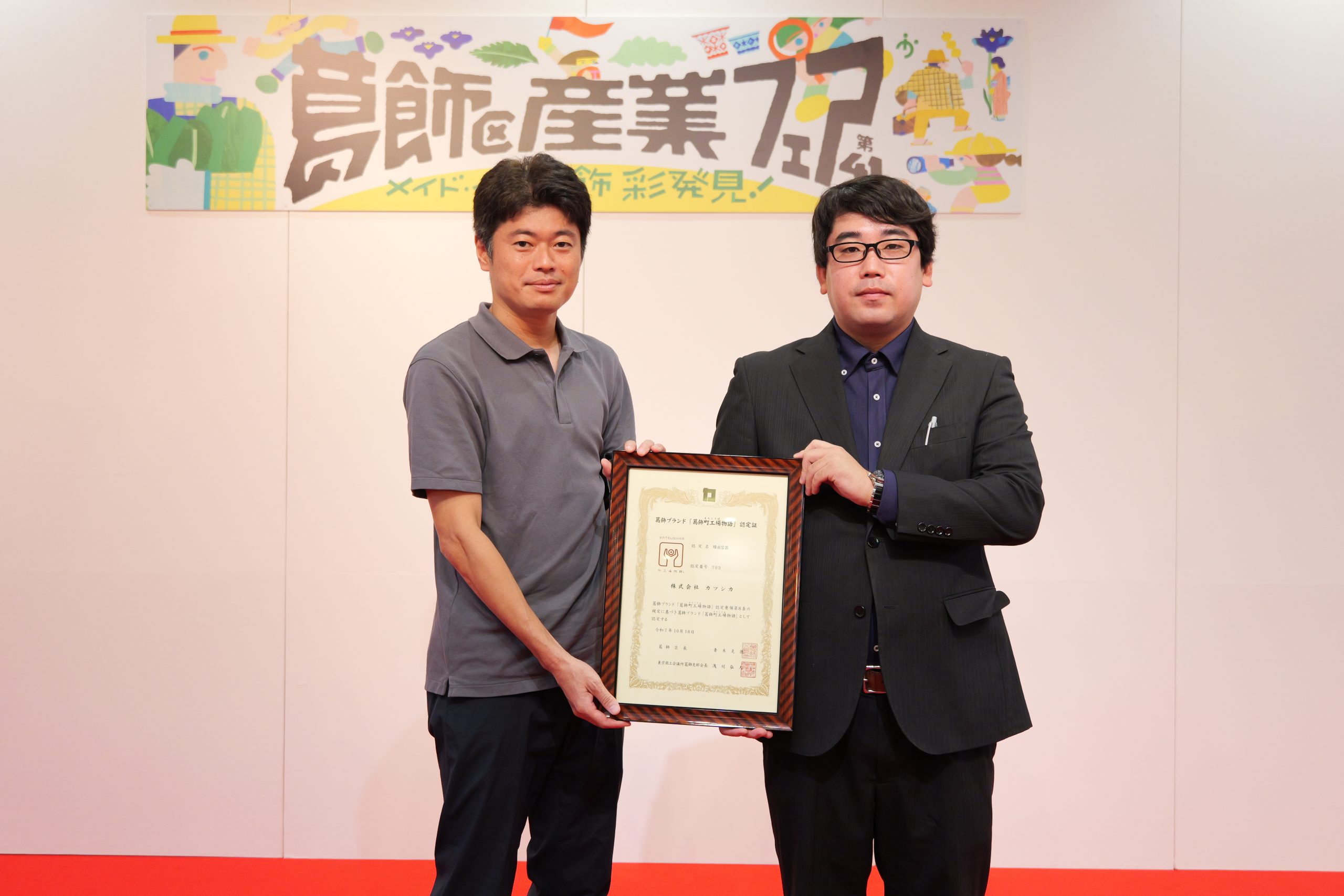 先日、10月18日(土)テクノプラザかつしか「葛飾区産業フェア」内において、認定証贈呈式が行われ、青木葛飾区長より認定証が授与されました。