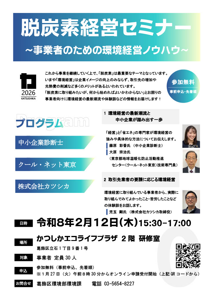 2026年2月12日(木)に開催される脱炭素経営セミナーに弊社取締役 児玉が登壇します。